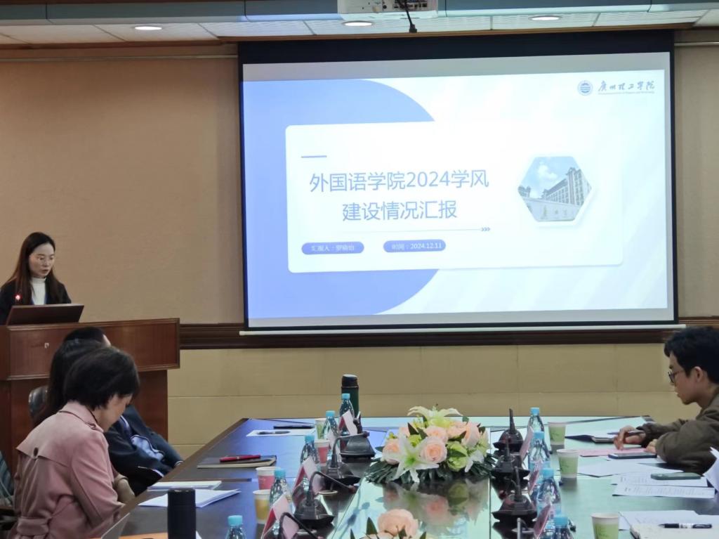 随后,学工组长罗晓怡从学院学生管理方面进行了学风建设情况汇报。罗老师详细阐述了学院学生管理部门在学风建设方面所做出的努力,其中包括成立学风建设工作小组,制定学风建设实施细则,组织了一系列学风建设活动;每周举行班会,每月开展学风督查行为,鼓励学生队伍参与到学风建设中来;建立学业和困难学生帮扶机制,组织各种交流分享会,为学业困难学生提供指导,帮助学生成长和就业;打造“星耀计划”外院品牌,通过学院微信公众号及官网宣传优秀学风建设案例,以榜样典型带学风,营造优良氛围;以优良教风正学风,提升学生学习动力。同时,罗老师也对现阶段学风建设中存在的问题进行了反馈与反思,并提出了下一阶段的工作计划。