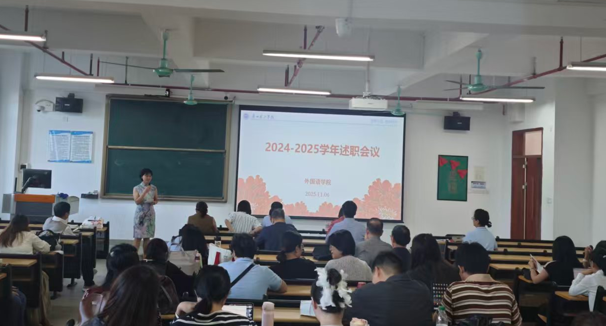为全面总结本科教学工作预评估经验,精准部署下一阶段学院重点工作,2025年11月6日,外国语学院在13-401会议室召开全体教职工大会。会议由学院党总支书记、副院长冉海涛主持,全院教职工参会。