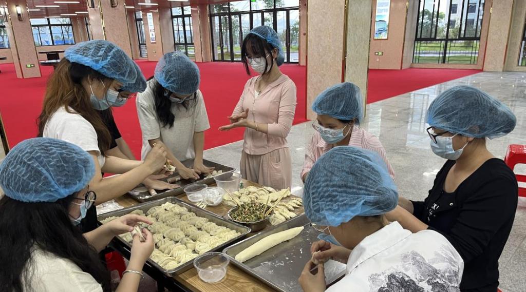 活动伊始,外国语学院辅导员为同学们介绍了饺子的历史背景、文化内涵以及制作流程,激发了师生参与活动的热情,营造了浓厚的活动氛围。随后,同学们亲自动手制作传统美食——饺子,体验了美食制作的整个过程。在欢声笑语中,同学们相互学习、交流包饺子的技巧,充分发挥了自己的创意,制作出了各种造型独特的饺子。同学们在丰富了校园生活的同时,也感受到了传统美食的魅力。