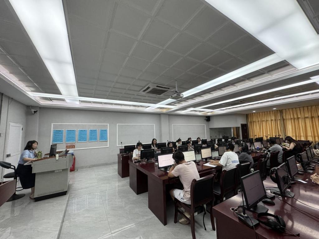 本次校赛选拔形式为集中口试。外国语学院利用翻译实验室的专业设备和软件,采用与权威口译赛事一致的考核形式和流程,将参赛选手的口试内容录音,再由专业的口译老师评审。此外,校赛分两个考场,由外国语学院口译课程组教师组织比赛并亲自监考,确保比赛公平公正,顺利进行。